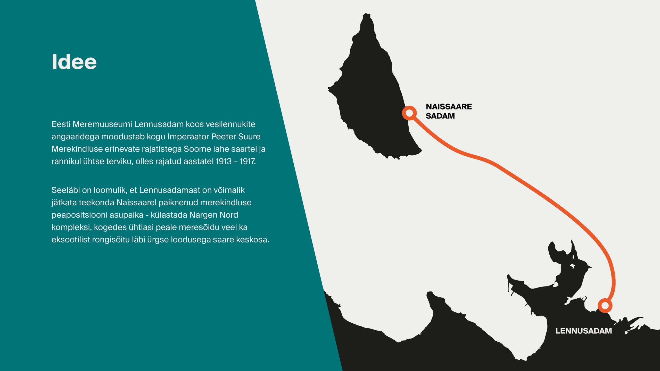 Kõige selle kokku vormimiseks toetasime Meremuuseumit esitluste, füüsiliste graafiliste lahenduste ning trükiste loomisel kontseptsiooni tutvustamiseks. Nargen Nord brändi identiteedi on välja töötanud Motor.